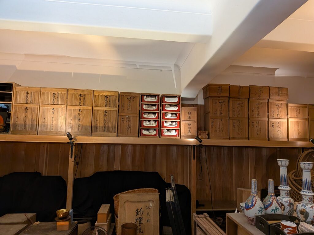 ☟にあるとおり、高価なものは無いらしいけど江戸時代等の生活が窺い知れる品が盛りだくさん。というか、割と雑然と積まれている。。。これ、研究したい人もいるのではヽ(^o^)丿